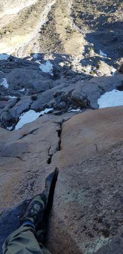 Personally, on-sight free-solo climbing is the purest expression of this; to confront an unknown vertical path with no prior information, relying solely on one’s accumulated experiences, senses, and judgments to navigate oneself to the top and get back down. On-sight climbing (approaching a climb with no prior information) is a very beautiful, intellectual, and creative way to climb as it presents the challenge and excitement of solving a series of natural puzzles for the first time. Free-solo climbing is a test of mental comfort in high risk settings where failure is not an option. To blindly go rope-less up a climb for the first time is obviously highly risky. I keep such excursions to an absolute minimum; and when I do make the judgment to do so, it is with a cold, calculated evaluation of all factors erring on the side of risk reduction. Which brings me back to the decision to ‘on-sight’ free-solo Colombianos.
