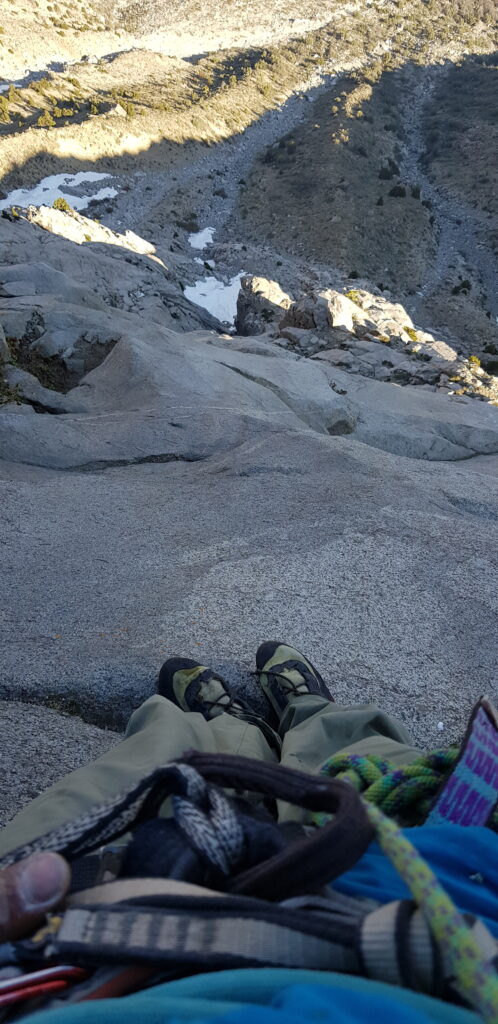 Last month I ‘on-sight’ free-soloed the classic Colombianos (450m 10-) in San Gabriel. On-sight is in quotes here because technically it was not an on-sight as I had climbed the first easy pitch with Joaco when we tried to do El Jote and Colombianos in a day. We bailed, which was my fault as even though I carried the team in the first half leading and freeing all of El Jote, I wanted to see the summit as it was only my second time in San Gabriel (I’d previously only been here 3 years ago when I was still learning to trad climb). By the time we got to the anchors of the first pitch of Colombianos we decided to bail because of the hour. I wasn’t really bummed though as these days I try not to cling onto any specific outcome or objective but rather try to live the present regardless of the situation (climbing and life is a lot more enjoyable this way ;)). Hiking down the trail in the golden afternoon light it occurred to me that having not gotten onto the meat of the climb, I could try to ‘on-sight’ free-solo the 450m granite crack climb.